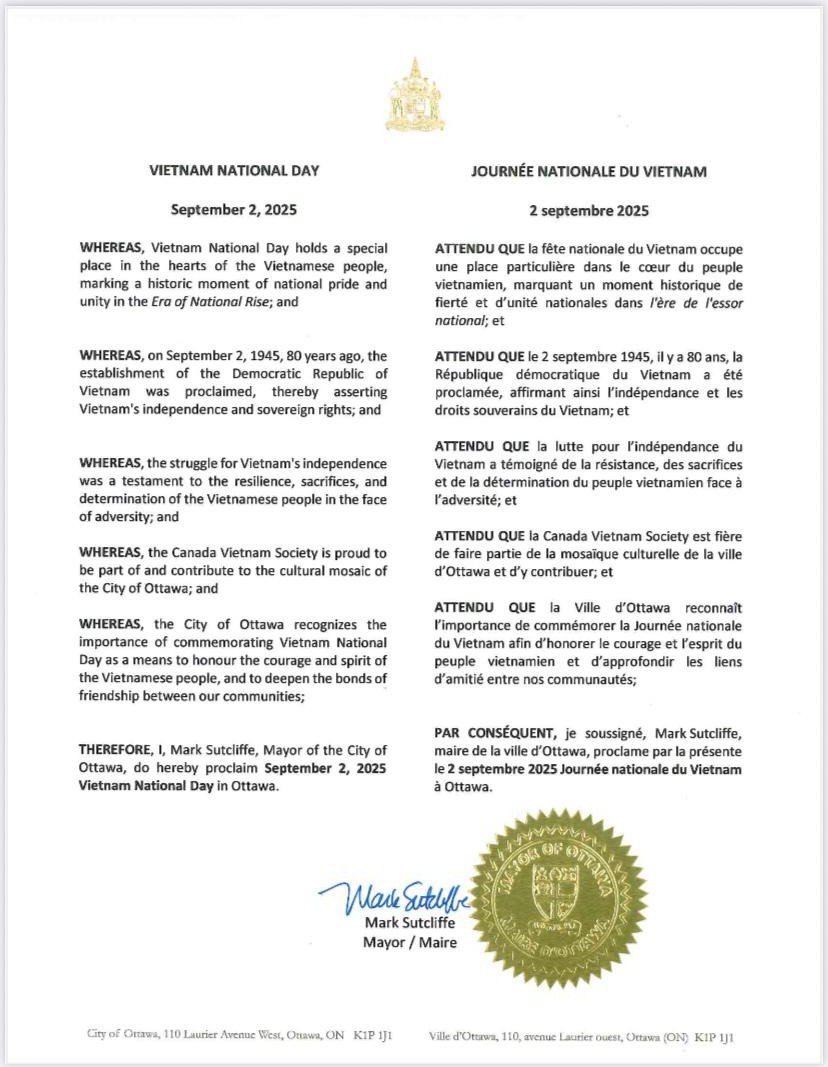• Remarks by Minister Mary Ng, Senator Victor Oh, Ambassador Pham Cao Phong, Mayor John Tory, Deputy Mayor Denzil Minnan-Wong.